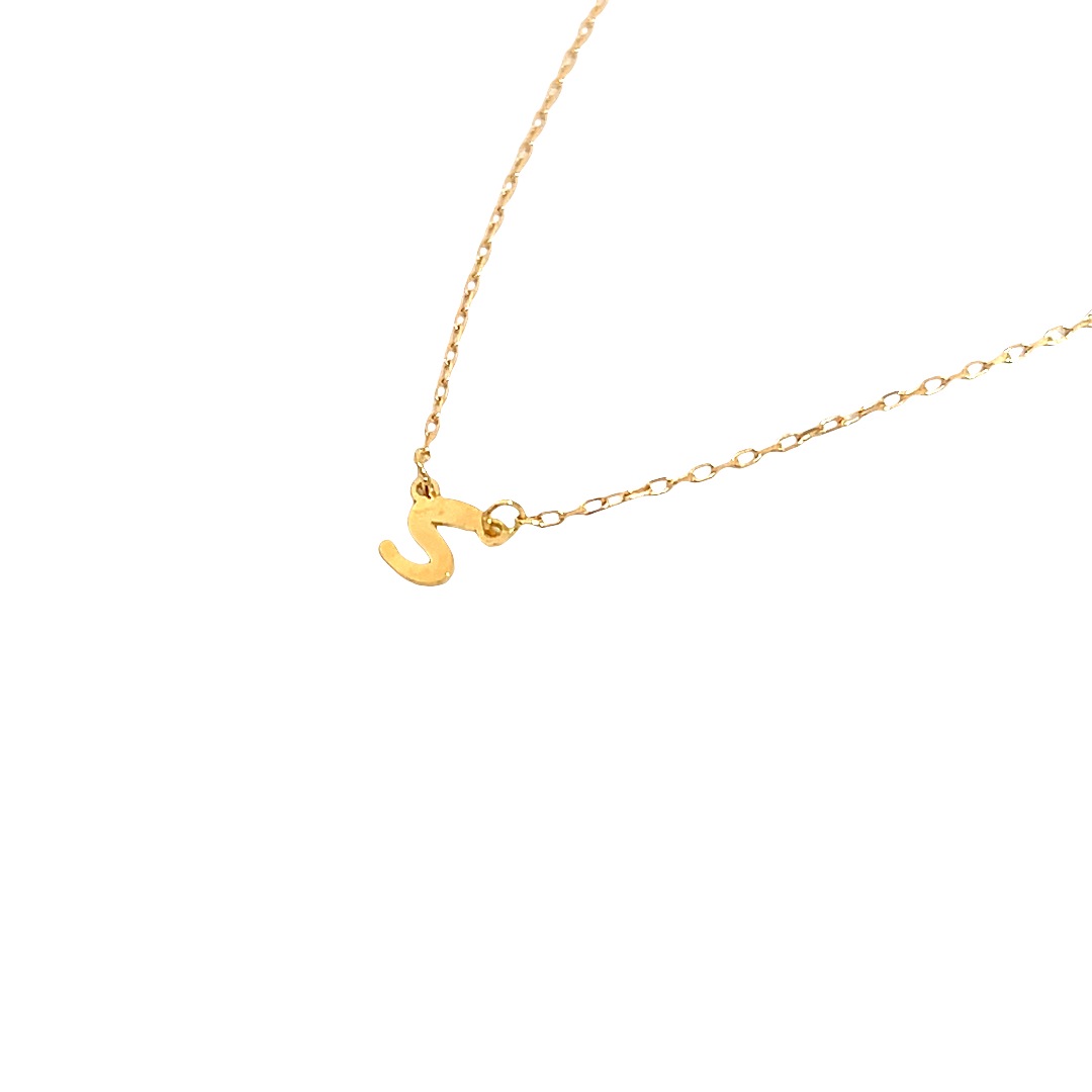 デコルテにさりげない輝きを添える、イニシャル「S」のネックレスです。普遍的な魅力を持つゴールドの輝きが、どんな肌色にもなじみ、上品な印象を与えます。
