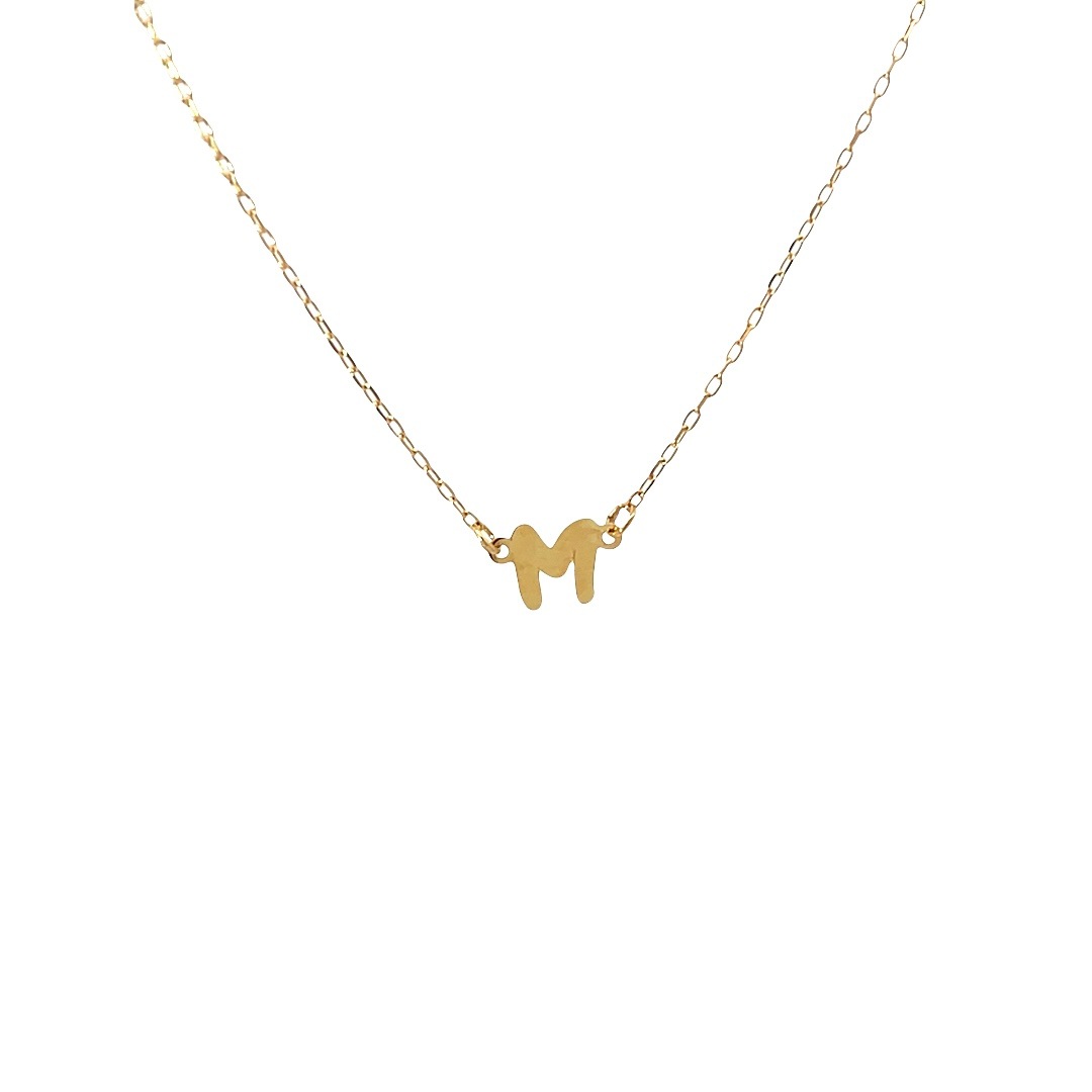 デコルテにそっと寄り添う、愛らしいイニシャル「M」のネックレスです。普遍的な輝きを放つゴールドは、どんなスタイルにも合わせやすく、上品で洗練された印象を与えます。